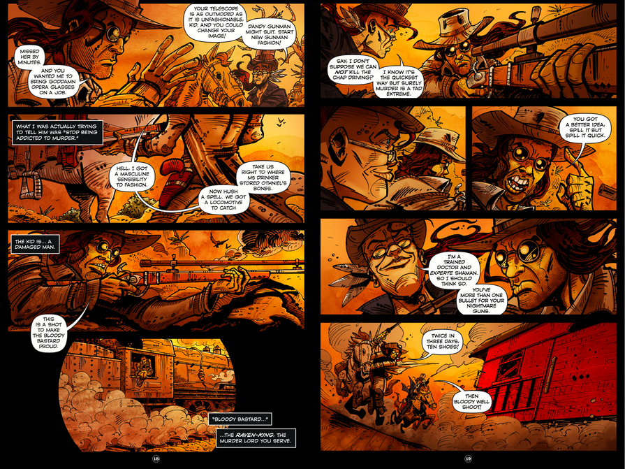 "Gunsmoke, black magic, mad science and terrible Satanic secrets of the Thunder Lizards." - Gestalt Comics.